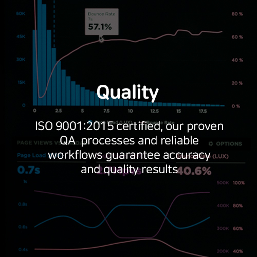 we operate the sampling and 100% review quality assurance (QA) steps for perfect quality control.